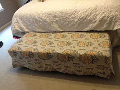 Here's the new slipcover! I heart slipcovers because they fit in the washing machine. Whereas, that bench does not.